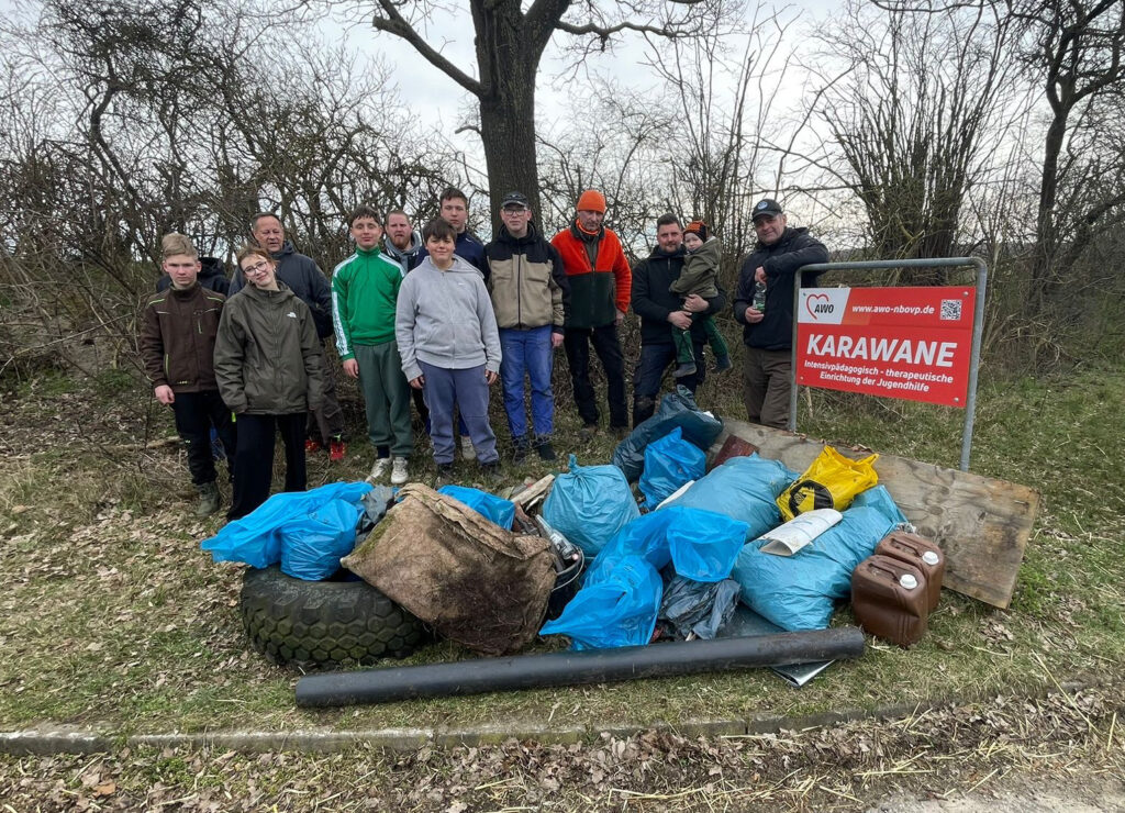 Unterstützt wurden die Jäger dabei tatkräftig von Betreuern und Jugendlichen der intensivpädagogische-therapeutische Einrichtung Karawane. Gemeinsam wurde angepackt, gesammelt und die Umgebung ein Stück lebenswerter gemacht.